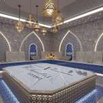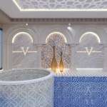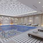Зона крытого бассейна с общей площадью в 130м2, сам крытый бассейн 60м2 с джакузи;