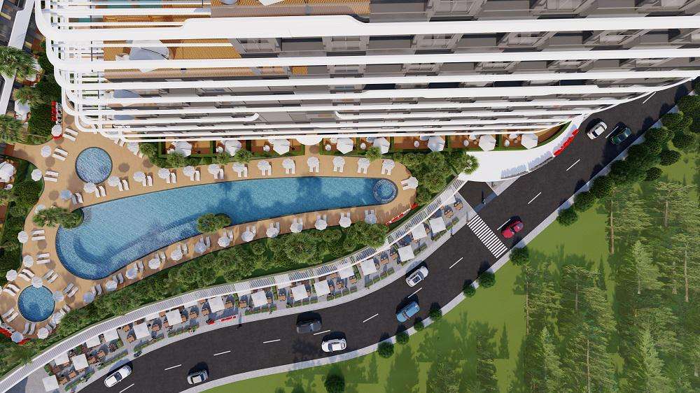 Проект будет построен на собственной выкупленной территории общей площадью 22800 кв.м. Два больших блока с общей инфраструктурой, зеленым ландшафтом по всей территории, огромным бассейном и зонами отдыха. Новый комплекс будет ориентирован на будущее благодаря экологически чистым солнечным энергетическим панелям и включает в себя богатую социальную инфраструктуру, IRISH PUB, кофейня STARBUCKS, маркет Мигрос, детский сад и рестораны, также будет в шаговой доступности аэропорт, городская площадь.