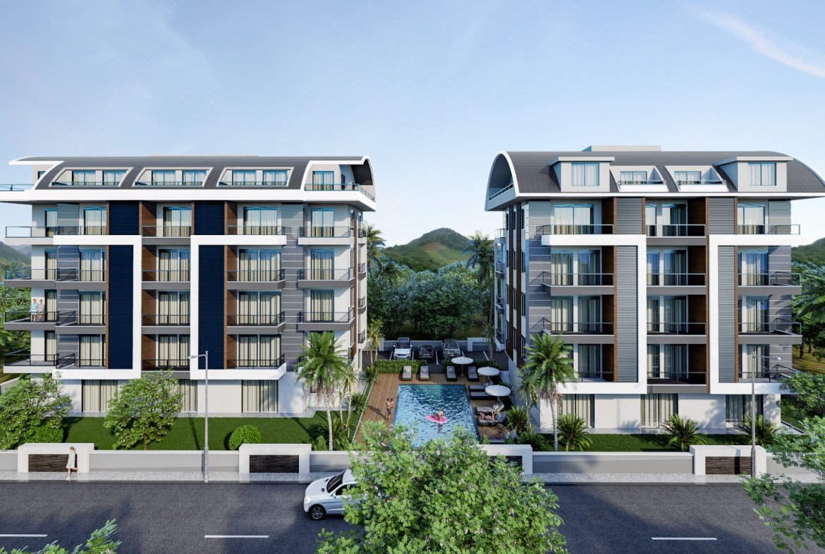 Новый проект на этапе строительства в панорамном районе Оба. На территории общей площадью 1938 м2, проект состоит из 2х блоков. Территория закрытая охраняемая с полной инфраструктурой.