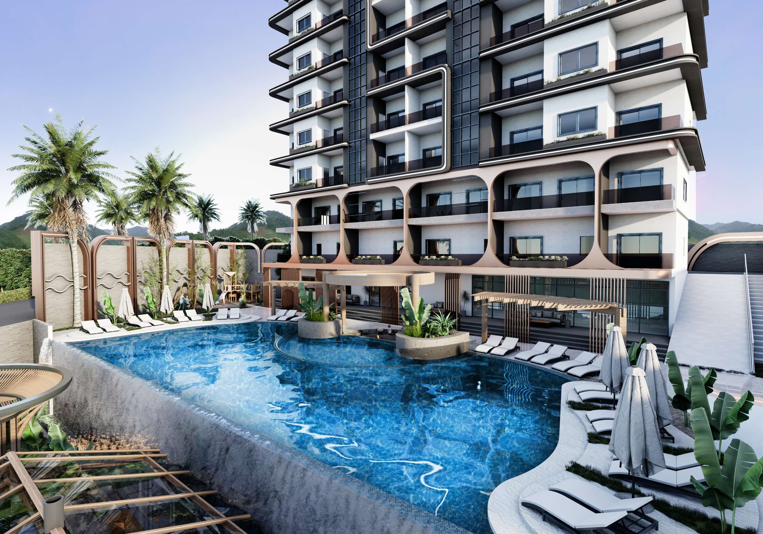 Проект элитной недвижимости в престижном районе Махмутлар, Алания - блистательное предложение для тех, кто ищет идеальное сочетание выдающейся архитектуры и безукоризненного комфорта на побережье Средиземного моря.